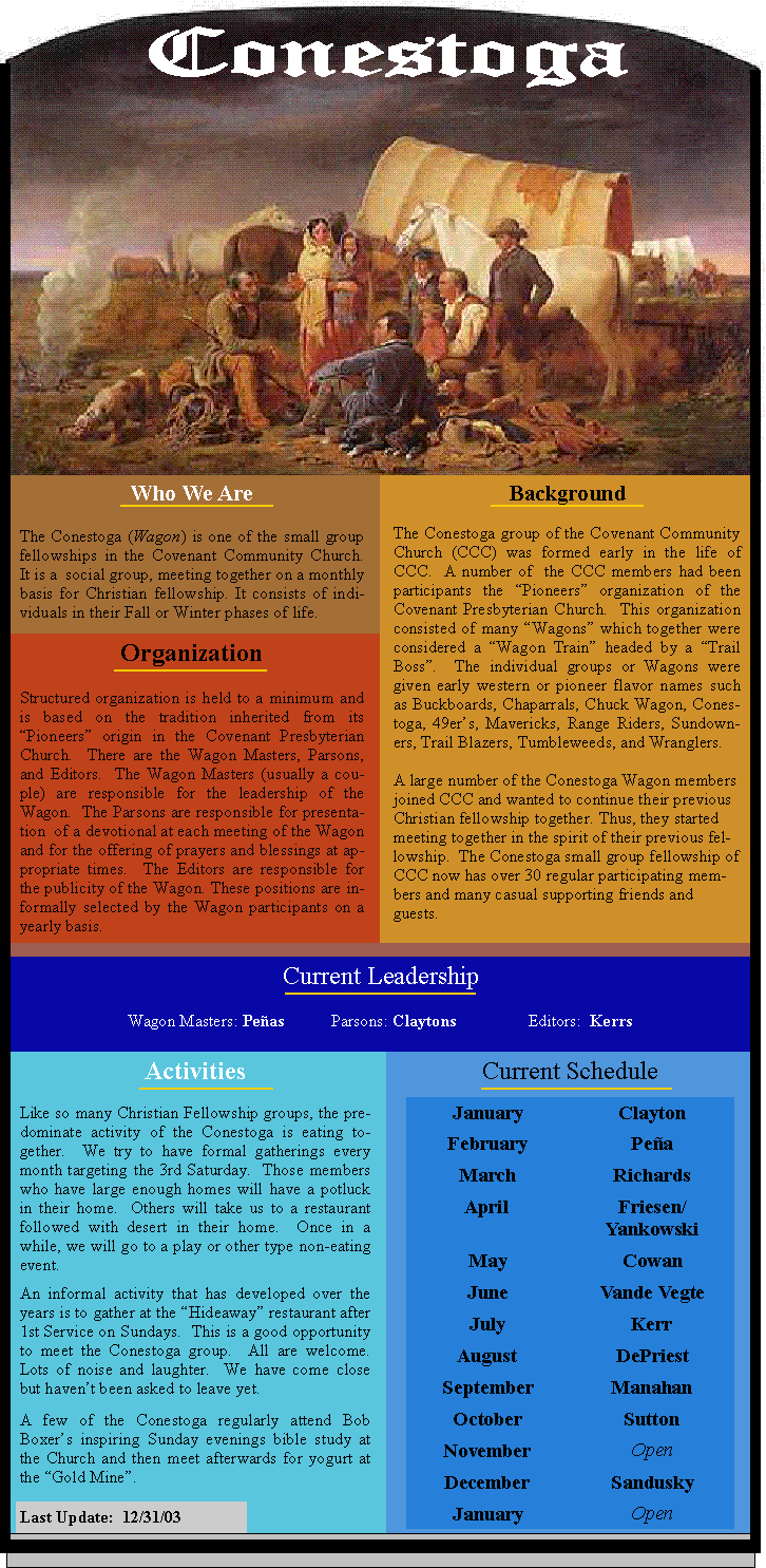 This is a reprint of a 2003 Conestoga page used in the Covenant Community Church's Web Site at that time.